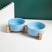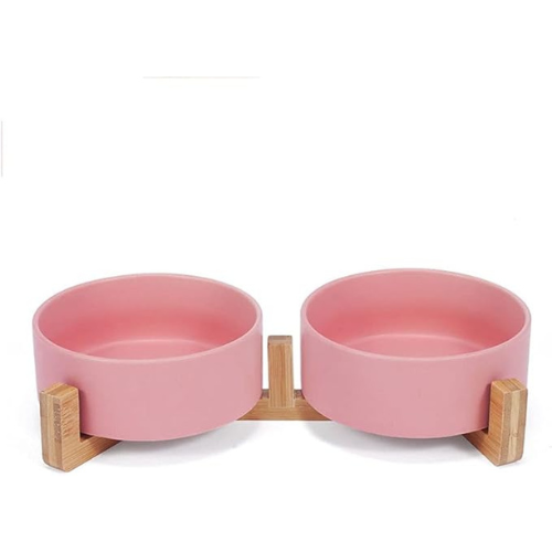 Principă Magazin Pisici Аксессуары для кошек Керамическая двойная миска для собак и кошек с деревянной подставкой