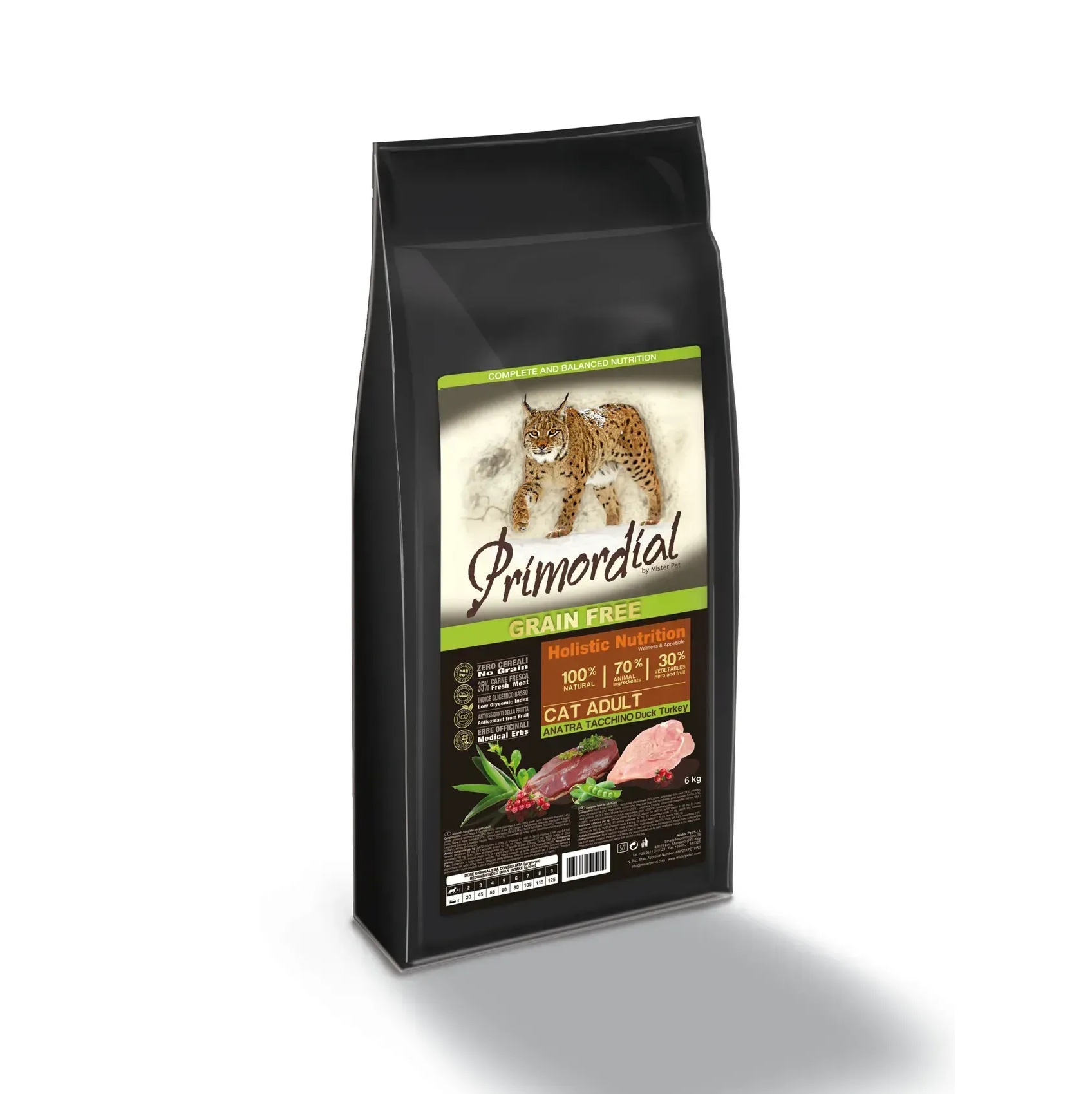 Primordial Cat Adult Duck-Turkey — Полноценный корм для кошек с уткой и индейкой. Беззерновой корм класса холистик. Специально отобранные виды мяса и рыбы поддерживают низкий гликемический индекс, гарантируют высокую аппетитность и перевариваемость корма.