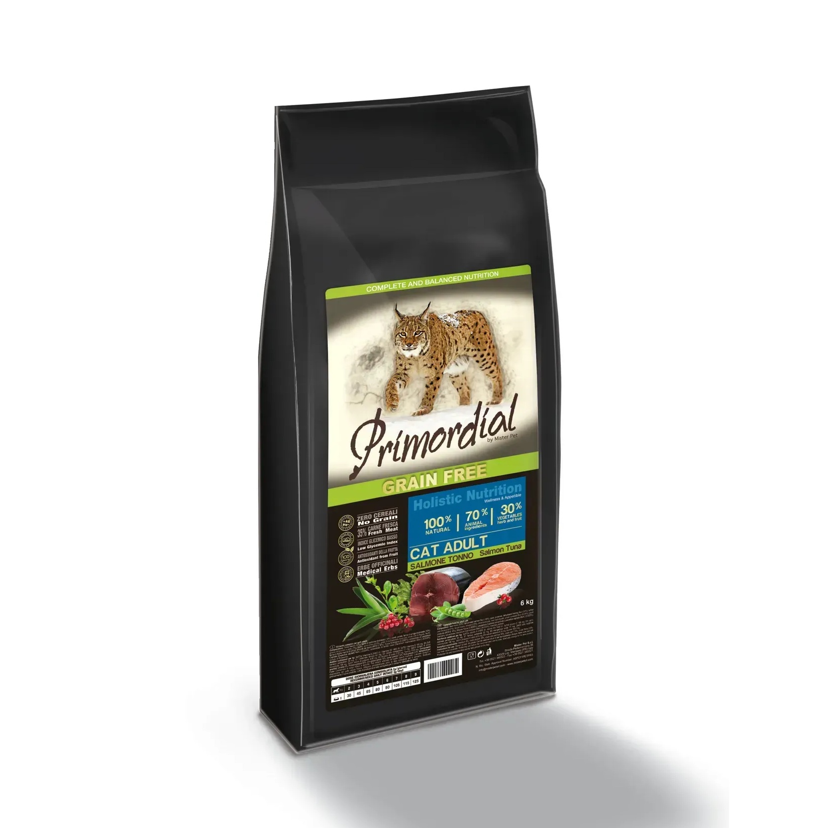 Primordial Cat Adult Salmon-Tuna — Полноценный корм для кошек с лососем и тунцом. Беззерновой корм класса холистик. Специально отобранные виды мяса и рыбы поддерживают низкий гликемический индекс, гарантируют высокую аппетитность и перевариваемость корма.