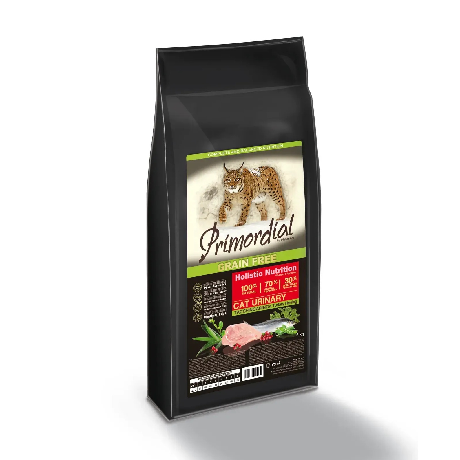 Primordial Cat Urinary Turkey & Herring — Полноценный беззерновой корм класса холистик для взрослых и пожилых кошек с индейкой и сельдью, профилактика МКБ.