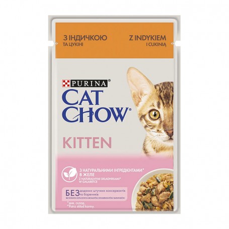 Purina Cat Chow нежные кусочки с индейкой и цукини в желе для котят.