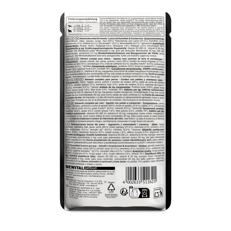 Belcando Ягненок и Клюква — Влажный корм для взрослых собак всех пород