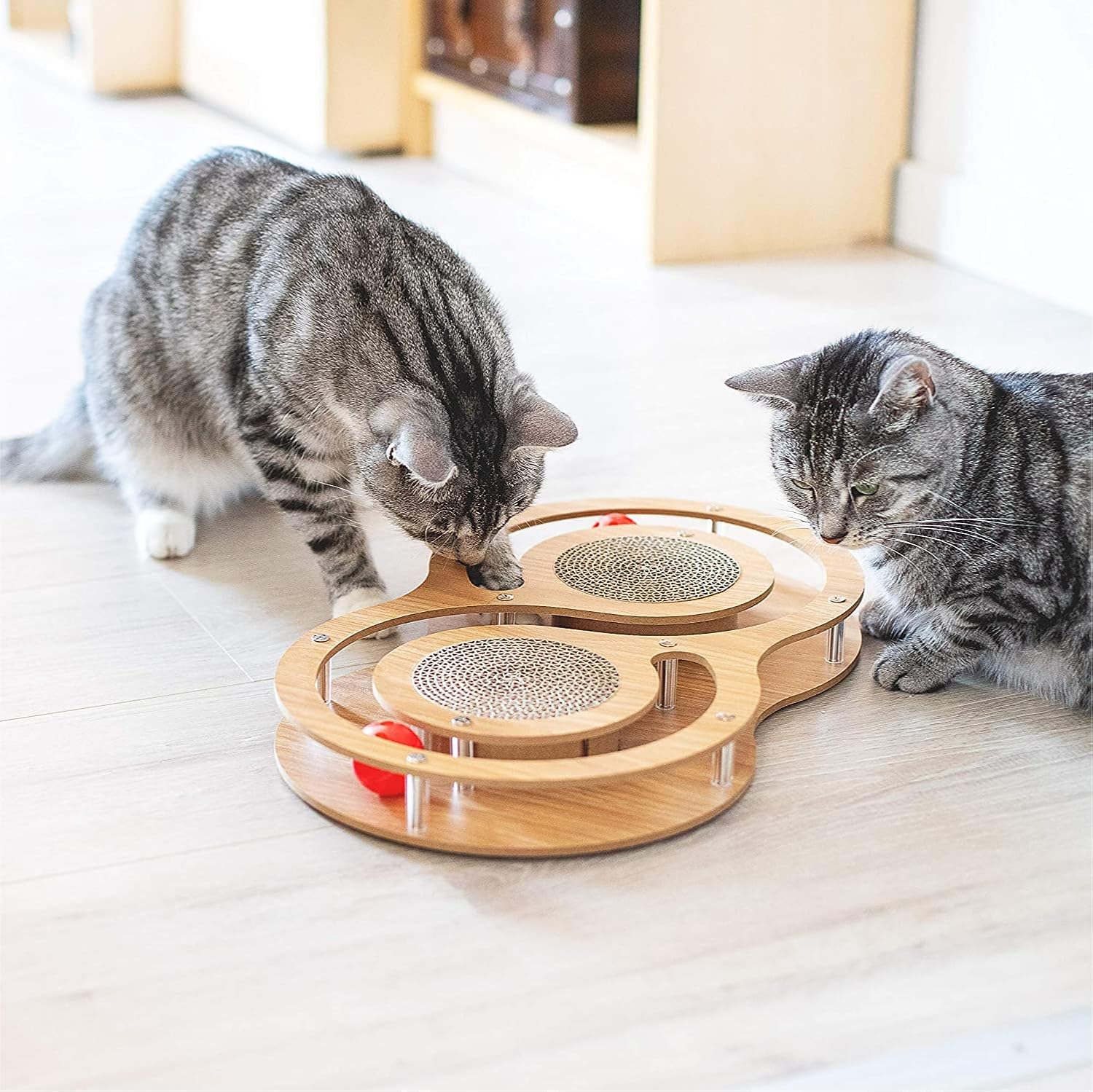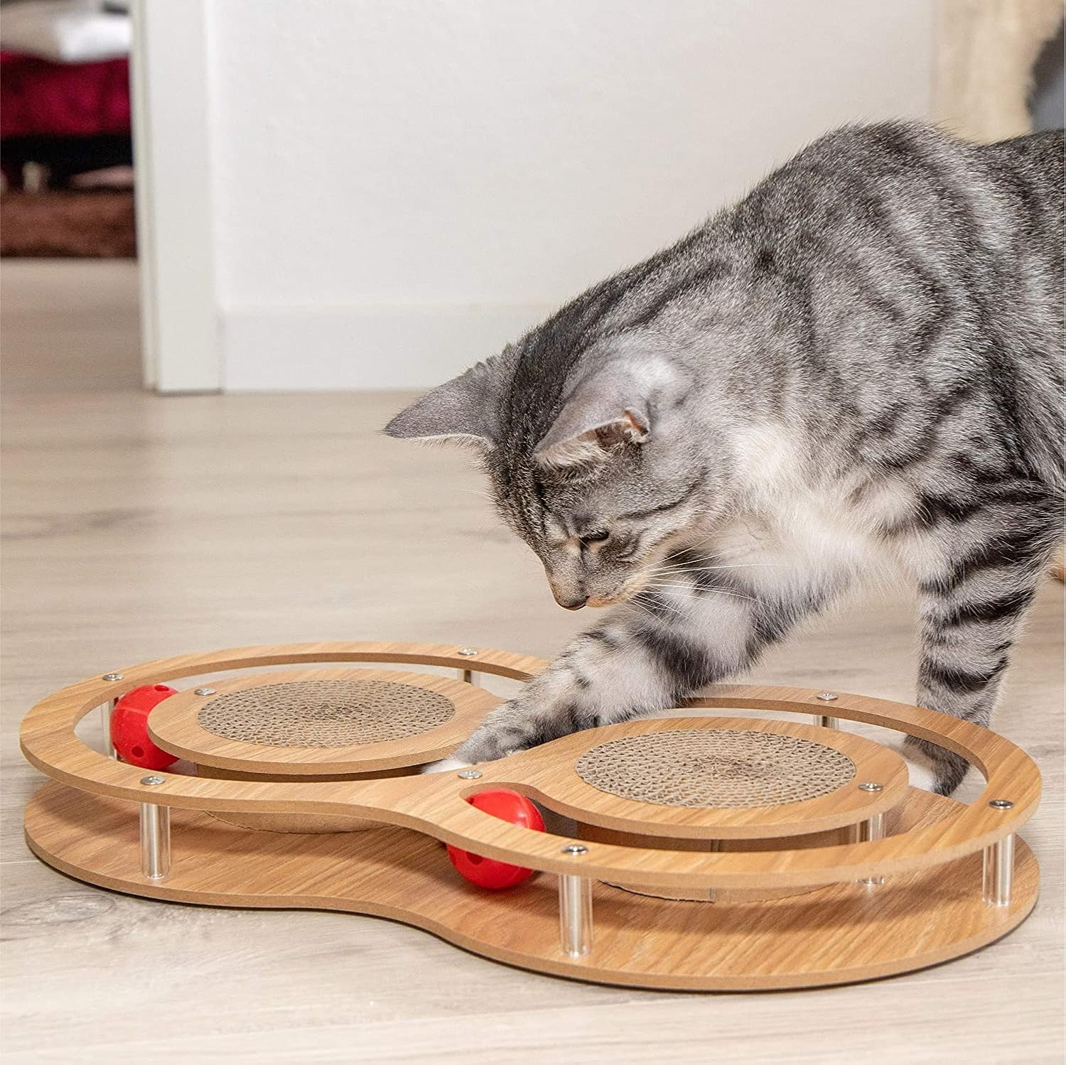 Интерактивная деревянная игрушка для кошек — когтеточка из гофрированного картона