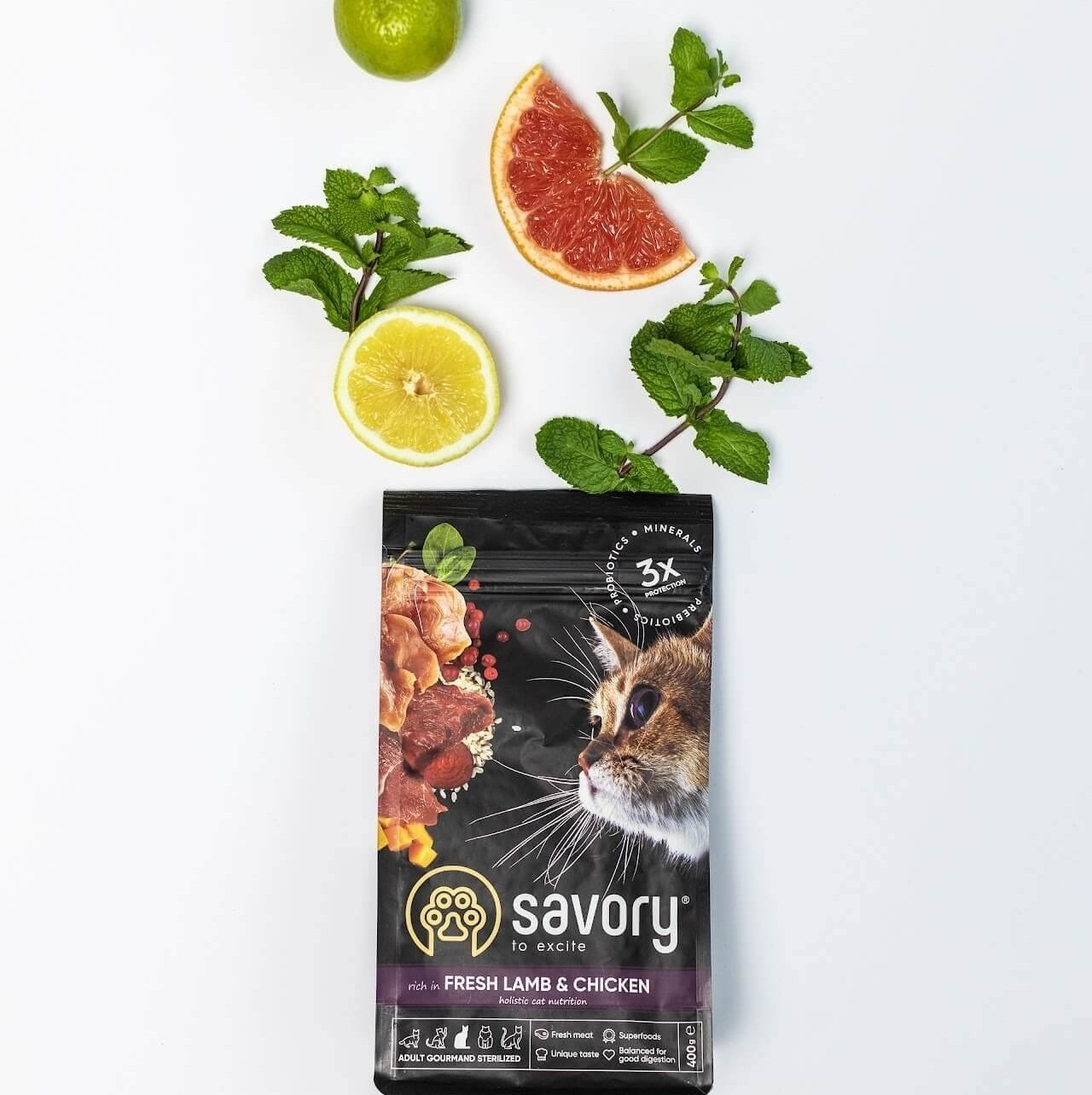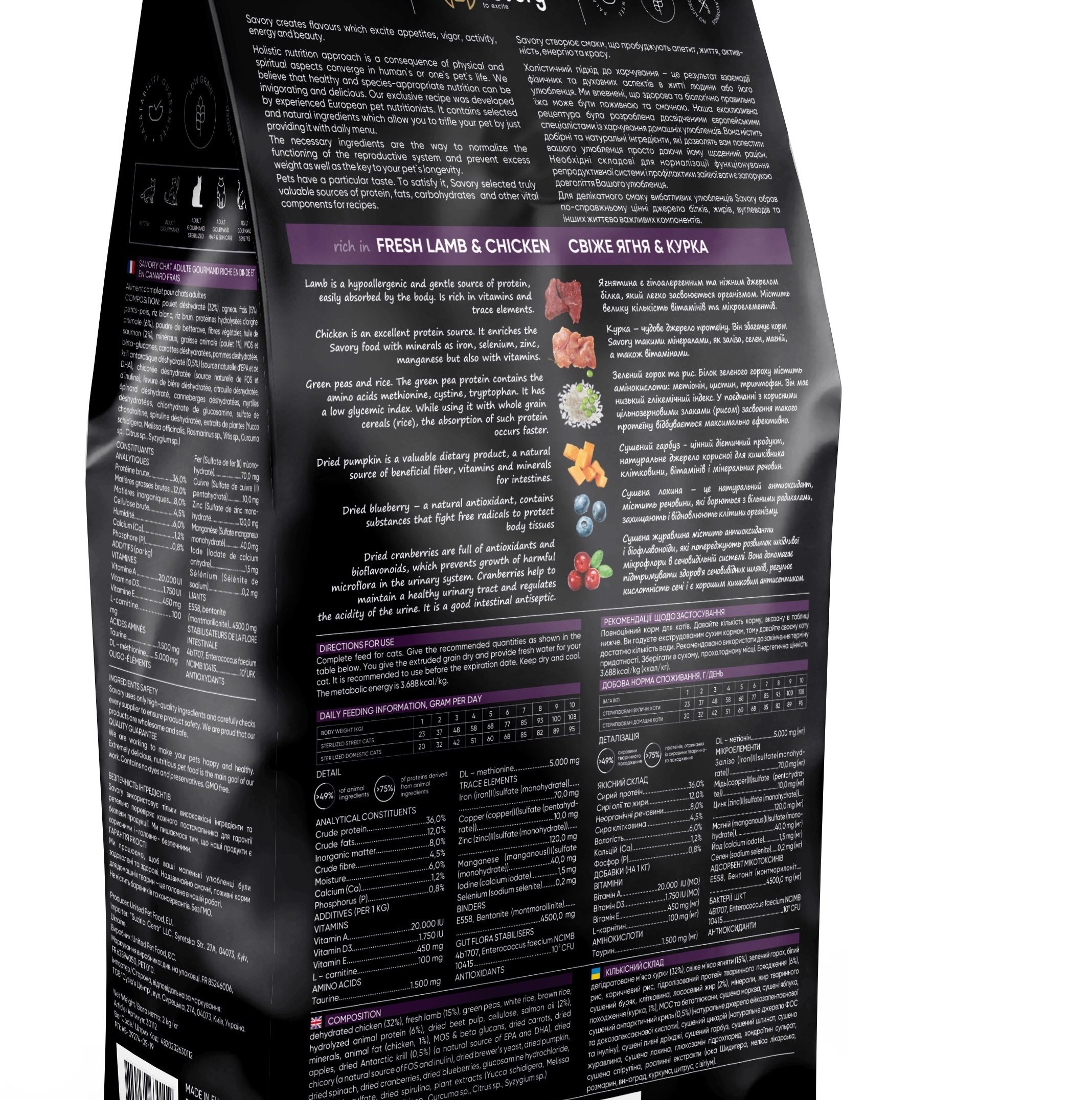 Холистическая рецептура со свежим ягненком и курицей для кастрированных и стерилизованных котов и кошек, малоактивных, брахицефалов и тех, кто имеет избыточный вес или склонность к нему. Имеет меньшую калорийность в отличие от другой позиции сухого корма Savory для стерилизованных.