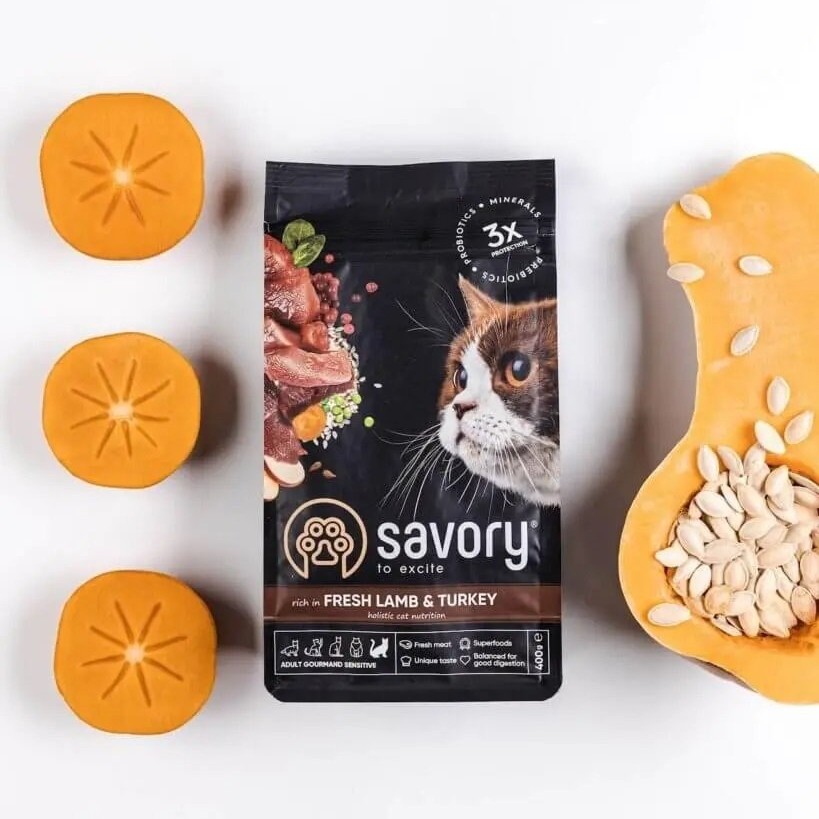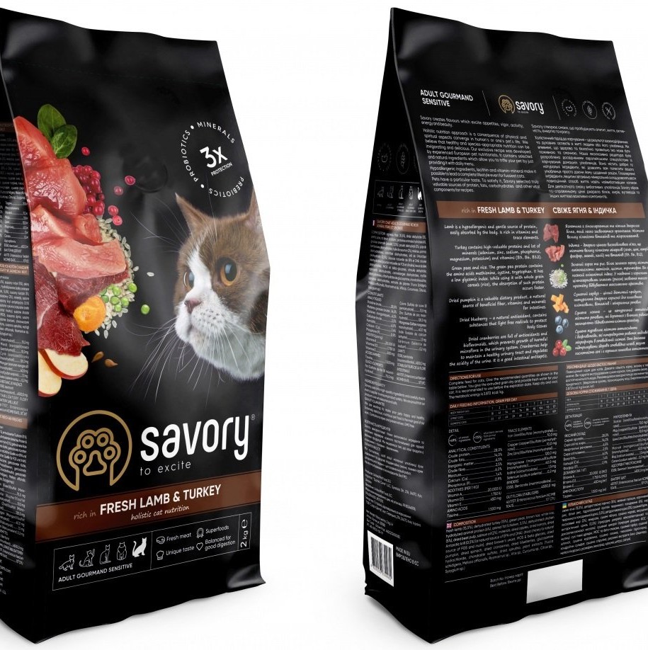 Эксклюзивная рецептура корма была разработана опытными европейскими специалистами по питанию домашних питомцев. Используя холистический подход, удалось создать биологически подходящий, здоровый рацион для кошек, который так полезен и вкусен, что лапки оближешь. Сочетание отборных натуральных ингредиентов позволяет заботиться о здоровье четырехногого, а изысканный вкус – дарить ему наслаждение от ежедневного потребления корма Savory. Сухой корм для кошек Savory содержит свежее мясо ягненка и дегидратированное мясо индейки, ягоды, фрукты и овощи. Эти компоненты созданы природой, чтобы котик смог унять голод, получив необходимые питательные вещества без риска возникновения аллергии.