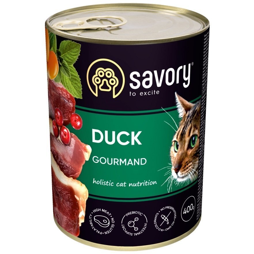 Эксклюзивная рецептура корма была разработана опытными европейскими специалистами по питанию домашних питомцев. Используя холистический подход, удалось создать биологически подходящий, здоровый рацион для кошек, который так полезен и вкусен, что лапки оближешь. Сочетание отборных натуральных ингредиентов дает возможность заботиться о здоровье четырехногого, а изысканный вкус – дарить ему наслаждение от ежедневного потребления корма Savory. Влажный корм Savory с уткой для кошек обеспечивает оптимальное функционирование всего организма любимца.