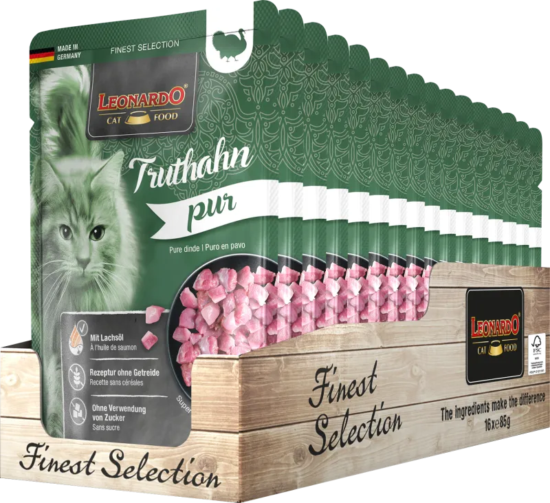 Leonardo Turkey (индейка) — Влажный корм для кошек с индейкой, мясной фарш в желе.