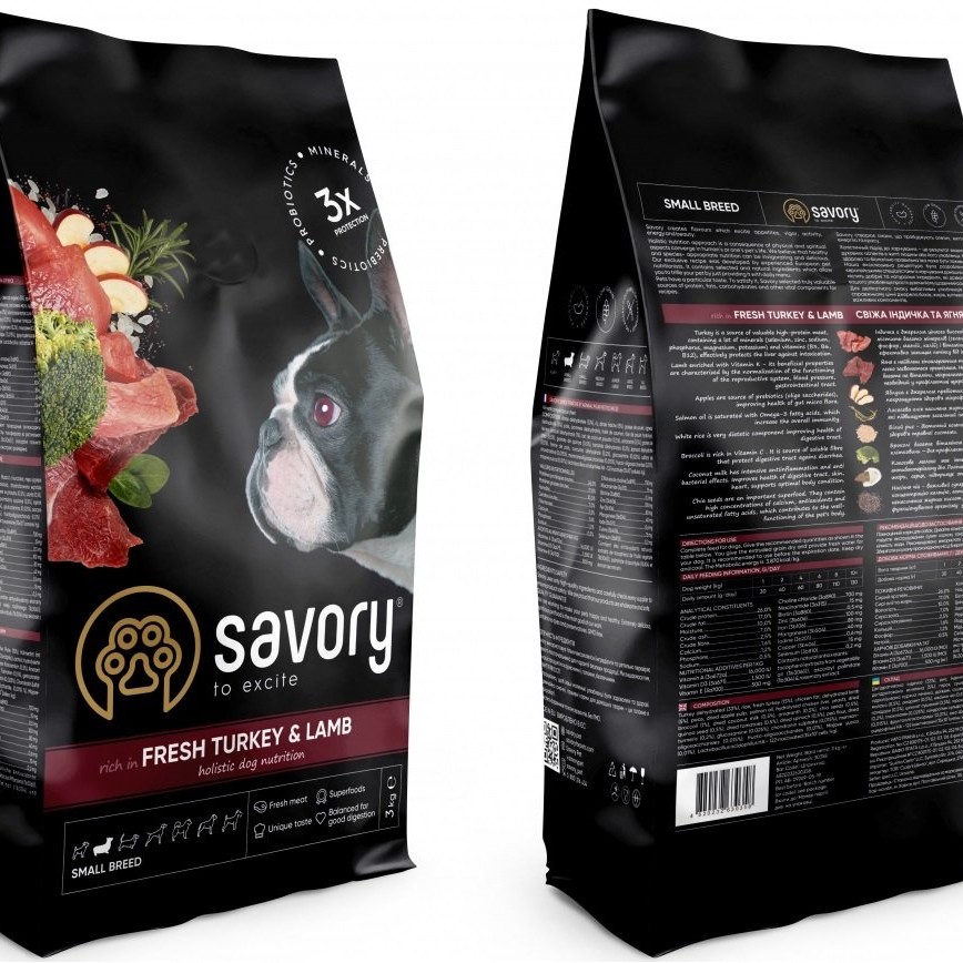 Эксклюзивная рецептура корма была разработана опытными европейскими специалистами по питанию домашних питомцев. Используя холистический подход, удалось создать биологически подходящий, здоровый рацион для собак, который так полезен и вкусен, что лапки оближешь. Сочетание отборных натуральных ингредиентов позволяет заботиться о здоровье четырехногого, а изысканный вкус – дарить ему наслаждение от ежедневного потребления корма Savory. Сухой корм для собак малых пород Savory содержит 53% качественного мяса индейки и ягненка, суперфуды, яблоки, брокколи, шпинат. Эти компоненты созданы природой для небольшой, но очень активной собачки. Гранулы корма разработаны на основе анатомических особенностей собак малых пород.