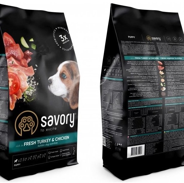 Эксклюзивная рецептура корма была разработана опытными европейскими специалистами по питанию домашних питомцев. Используя холистический подход, удалось создать биологически подходящий, здоровый рацион для собак, который так полезен и вкусен, что лапки оближешь. Сочетание отборных натуральных ингредиентов позволяет заботиться о здоровье четырехногого, а изысканный вкус – дарить ему наслаждение от ежедневного потребления корма Savory. Сухой корм для щенков Savory содержит 55% качественного мяса индейки и курицы, суперфуды, яблоки, цуккини, шпинат. Эти компоненты созданы природой для здорового роста и гармоничного развития малыша.